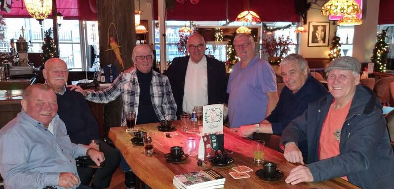 In het Eetcafé De Halve Maan in Rijswijk waren zo’n veertig coryfeeën uit de Haagse voetbalhistorie aanwezig. Al met al werd het een gezellig samenzijn waarbij uiteraard weer veel herinneringen van vroeger werden opgehaald.