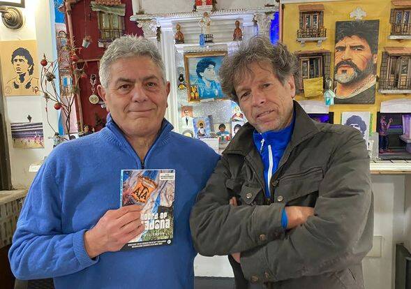 Prachtig moment voor auteur, uitgever en Maradona-addict Chris Willemsen. Zijn boek over Maradona wordt vanaf nu ook geëxposeerd in het Maradona-gekke Napoli.